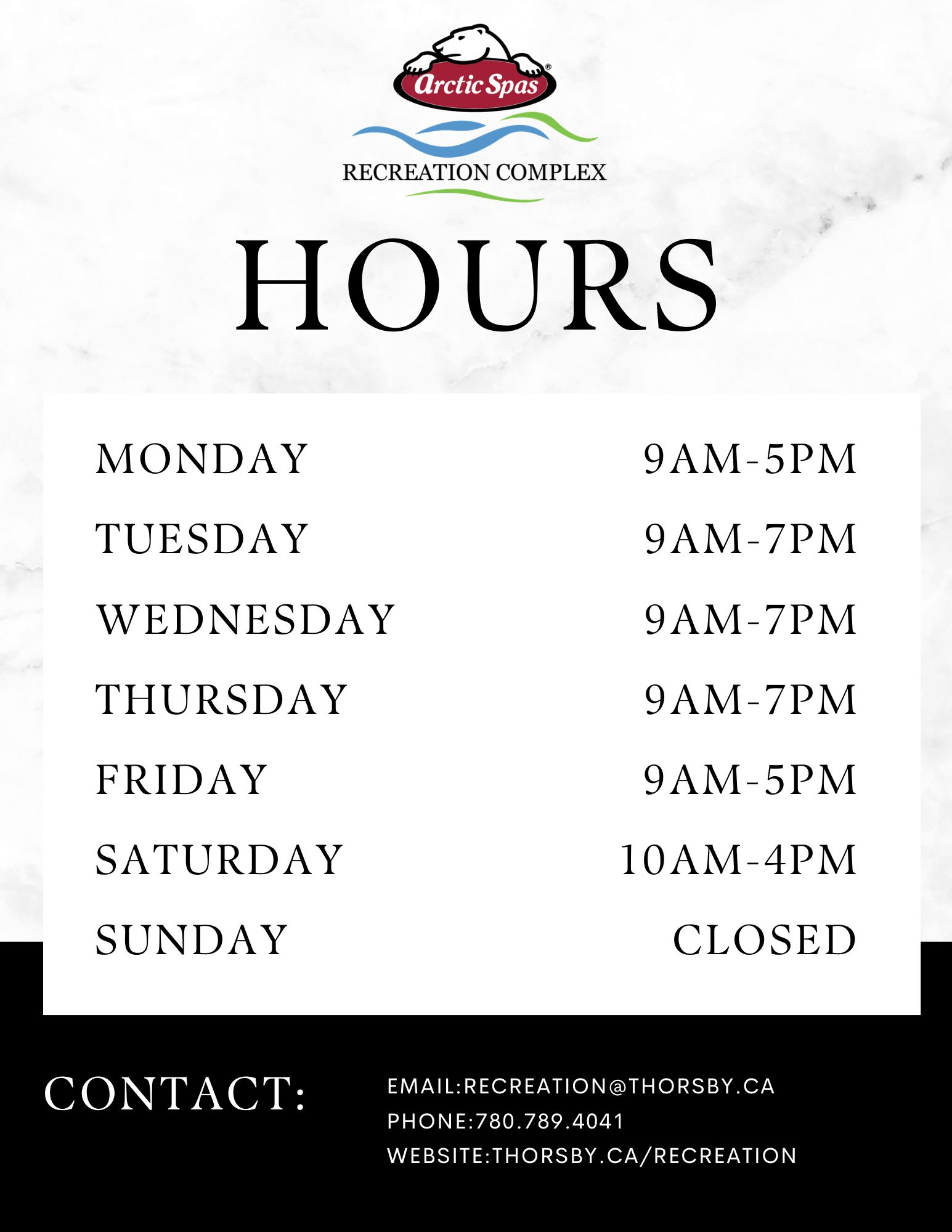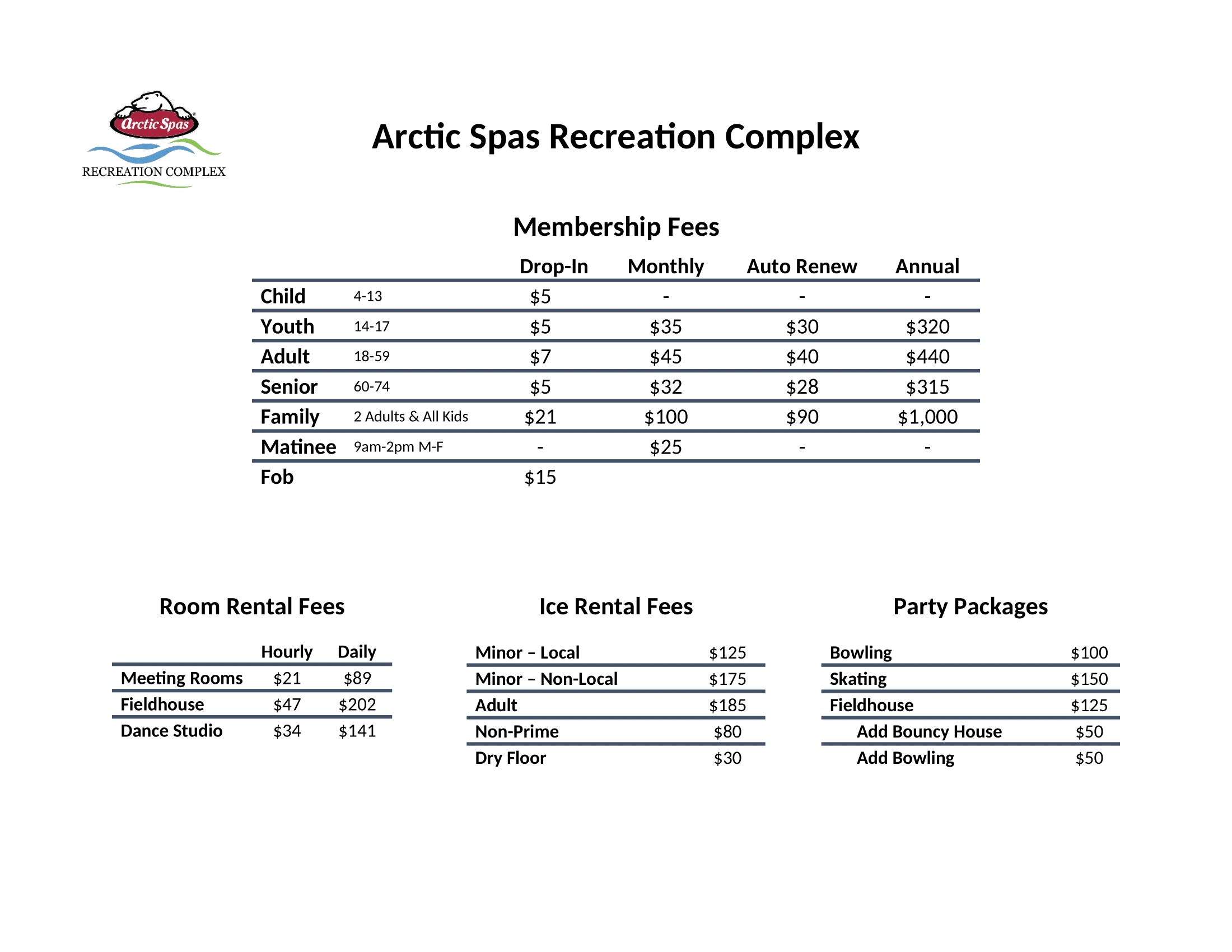 The Arctic Spas Recreation Complex also has an assortment of FAMILY ORIENTED PROGRAMS AND EVENTS that take place all year round!